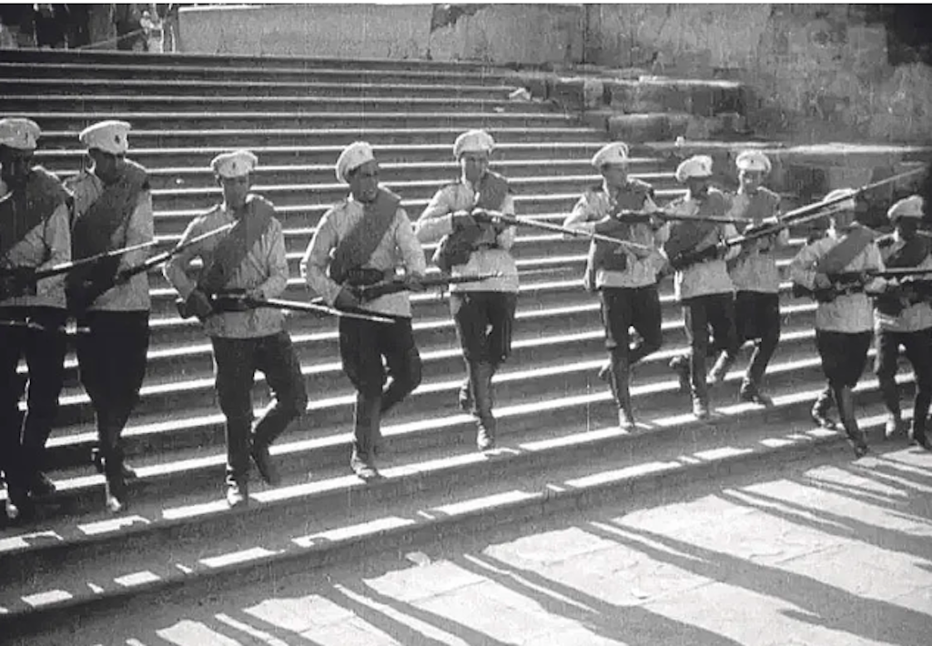 Según reconoció Eisenstein, el primer obstáculo fue el clima. La primera parte comenzaría en el campo, pero el clima del marzo de 1925 lo empujó hacia el sur, hacia Odesa, en el mar Negro, actual territorio de la guerra de Ucrania. Fue ahí donde el siempre curioso Eisenstein se encontró con mayor disposición de medios para profundizar en el muy marginal episodio de la revuelta de marineros del acorazado Príncipe Potemkin. El acorazado llevaba el nombre de uno de los favoritos de la zarina Catalina la Grande, a quien se debe la pertenencia de esa región a la corona imperial rusa.