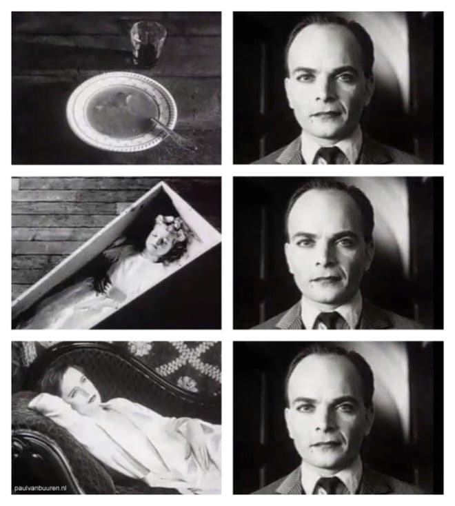 A los 21 años, Kuleshov realizó un experimento que cambiaría para siempre la comprensión del cine. Tomó el mismo primer plano del actor Ivan Mosjoukine, con expresión neutral. Lo yuxtapuso con tres imágenes diferentes: un plato de sopa, un ataúd con un cadáver de una niña, una joven descansando.