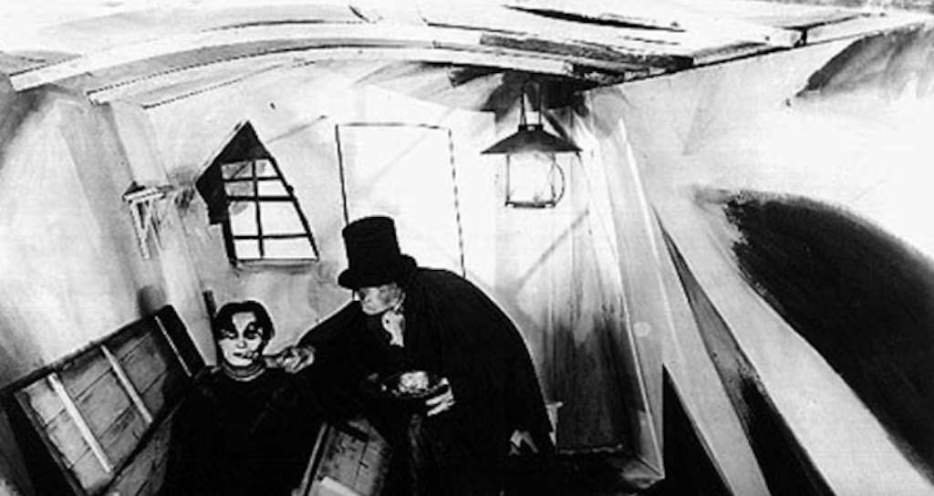 El expresionismo alemán surgió del trauma de posguerra. El gabinete del Dr. Caligari (Robert Wiene, 1920) presentaba decorados pintados con ángulos imposibles, sombras distorsionadas, arquitectura delirante. El mundo exterior reflejaba la psique perturbada de los personajes y de una nación derrotada.