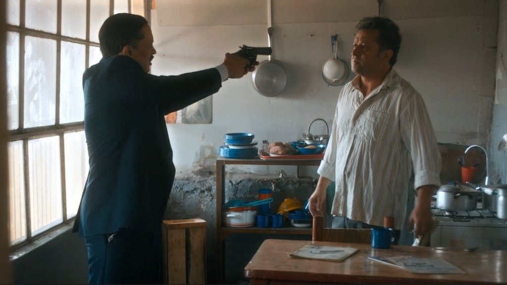 El personaje de Alcaíno no es simplemente víctima ni perpetrador, sino el reflejo de aquellos hombres y mujeres cuya ambivalencia los entrampó en estructuras violentas desde múltiples frentes. Actúa, decide, se beneficia, resiste y colabora en simultáneo tanto con la dictadura como con la resistencia. Esta ambigüedad se vincula con lo que Rothberg llama implicación compleja, en que el sujeto no encaja fácilmente en los binarismos de víctima o victimario. Mario ocupa una zona intermedia, enredada, y a ratos, incómodamente cuestionable; se relaciona con miembros de la CNI y accede a un poder económico y social por su posición como empresario, implicado estructuralmente en una red de poder represiva, aunque no ejerza directamente la violencia. Mientras, su militancia con el PC y colaboración con el FPMR genera una duplicidad ambigua, y su vida se convierte en una performance constante de doble lealtad, sindo cómplice y enemigo del sistema al mismo tiempo.